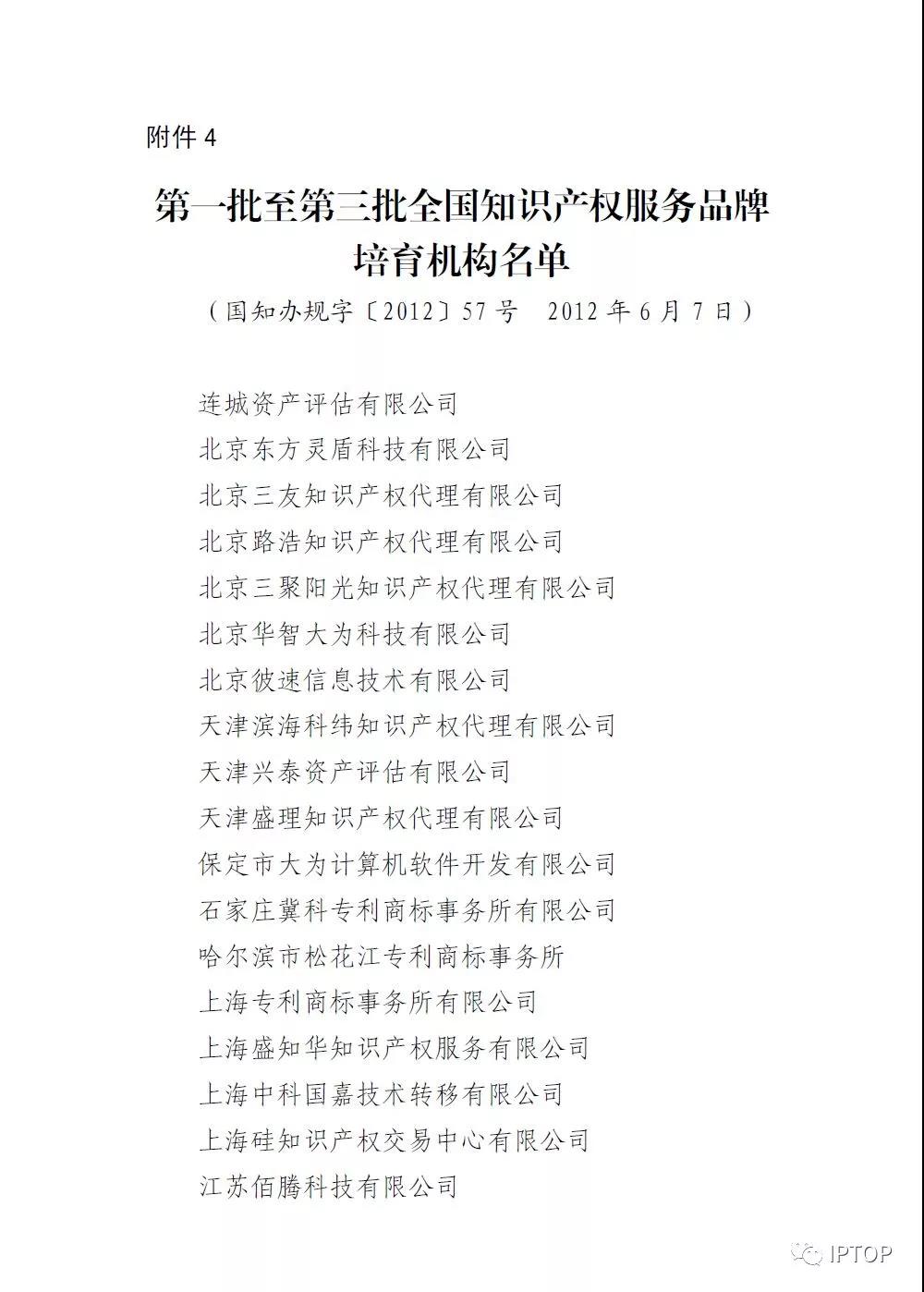 第四批全国知识产权服务品牌培育机构名单
