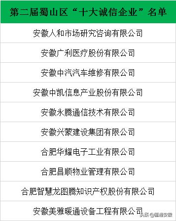 【第二届蜀山区"十大诚信企业"名单】