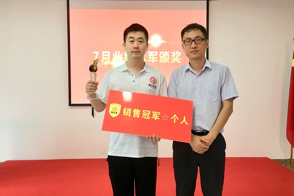 龙图腾业务部七月销售冠军——团队 此次7月销售冠军团队由业务一部一组蝉联,业务一部三组李伟荣获销售冠军个人。朱总为7月销售冠军团队和销售冠军个人颁发了奖杯和奖牌。作为业务一部三组小组经理,李伟坦言今后将加强员工的基础业务知识同时分析业务模式,继而更好的拓展业务。并针对专利管理系统的开发和完善提出先讨论后优化的建议,希望客户在使用我们的系统时更方便、快捷。