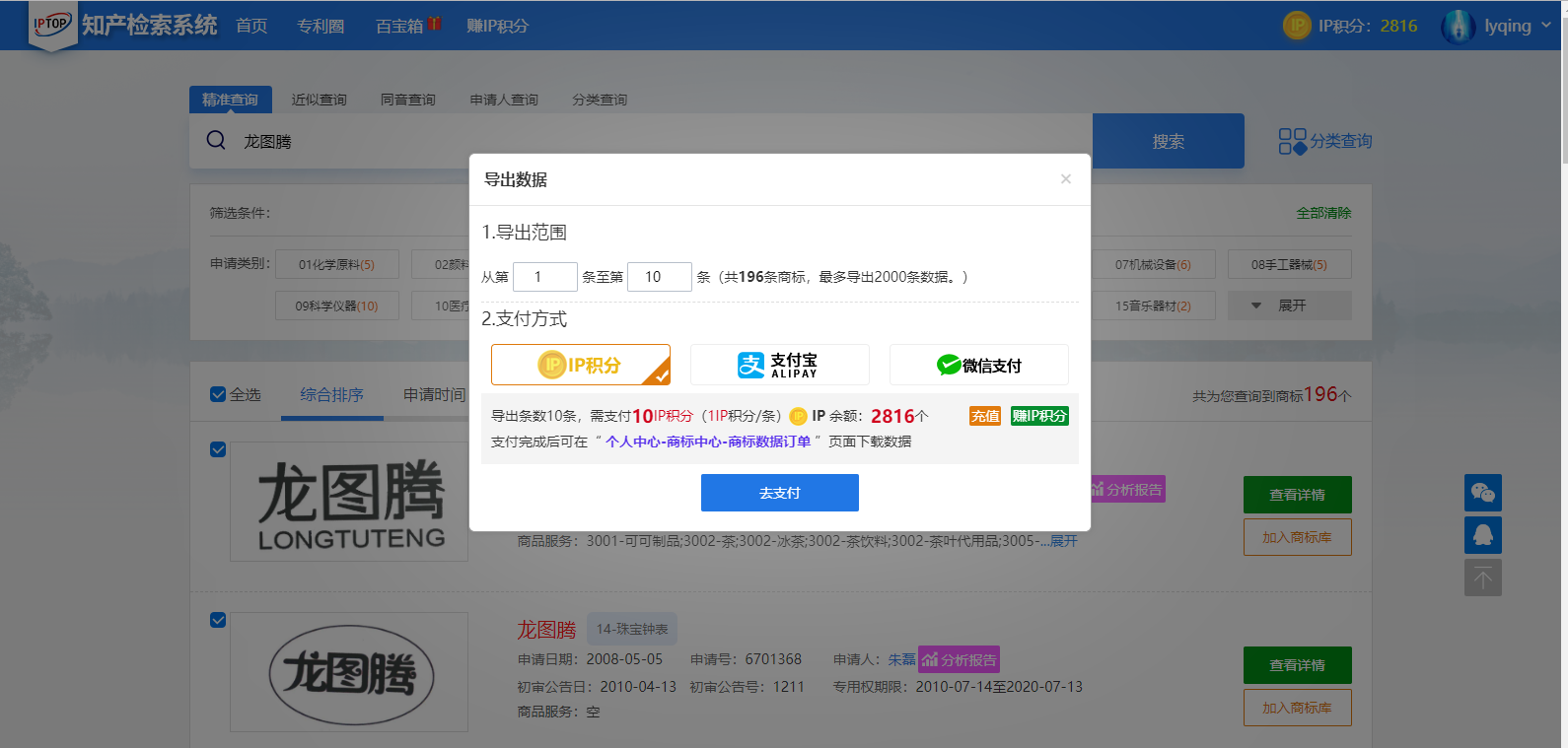 三、商标数据导出 商标查询结果,不仅支持在线查看,还支持数据下载。海量商标数据任您下载。