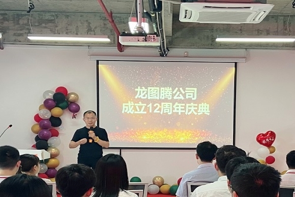 庆典上刘总发表了热情洋溢的贺词,指出龙图腾这12年间的不断创新发展历程,充分肯定了公司在各方面取得的骄人业绩,并满怀激情地展望未来公司的发展前景,会一直坚持”引领中国创新”作为公司的发展使命。