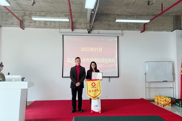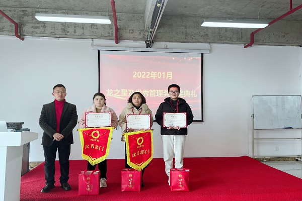 买专利卖专利找龙图腾,真高效! 查专利查商标用IPTOP,全免费!专利年费监控用IP管家,真方便! 为鼓励在工作中成绩优异、工作表现突出、辛勤努力的优秀员工及优秀团队,2月21日上午,龙图腾公司2022年01月份龙之星颁奖典礼分别在高新区和蜀山区办公室举行,公司董事长刘光、各部门负责人及全体员工参加了颁奖典礼。